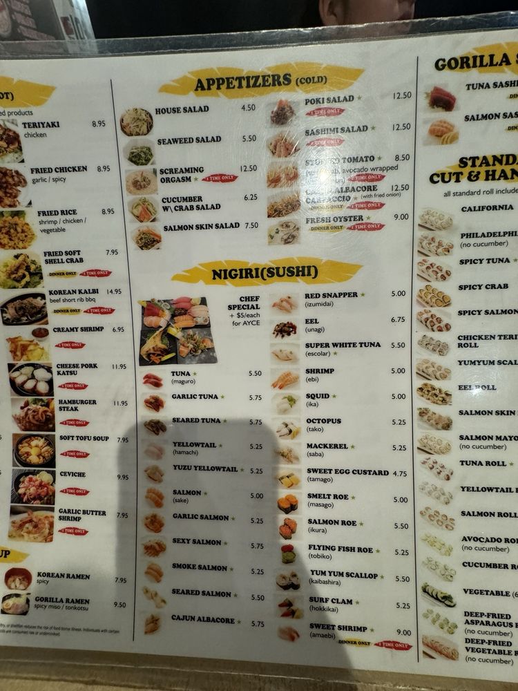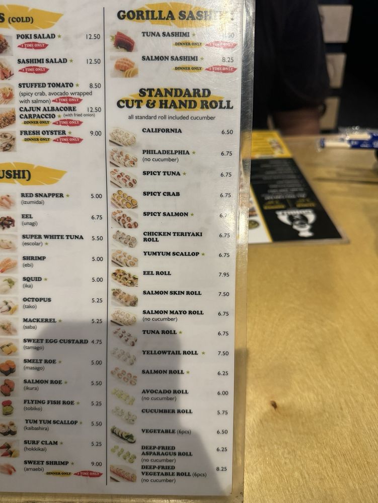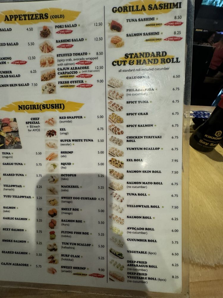 Gorilla Sushi is a trendy and casual restaurant located in Las Vegas, offering a variety of sushi options with vegan and vegetarian choices. With amenities like takeout, delivery, and reservation options, Gorilla Sushi provides a convenient dining experience. Customers rave about the quick service and delicious sushi rolls, highlighting the affordable all-you-can-eat lunch special. The atmosphere is lively, with attentive staff and a fun vibe, making it a great spot for groups or solo diners. The restaurant's menu provides detailed descriptions of each roll, perfect for sushi newcomers. Overall, Gorilla Sushi is a must-visit for sushi enthusiasts looking for a memorable dining experience in Las Vegas.